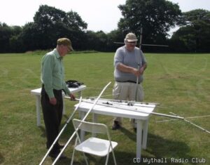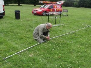 The dipole and OFCD were positioned the day before with the aid of Dave’s (G3YXM) magical catapult and open faced fishing reel (a real art of casting this!) and although short of room in our operating corner the two HF antennas eventually performed well despite some initial inter- antenna reaction!!