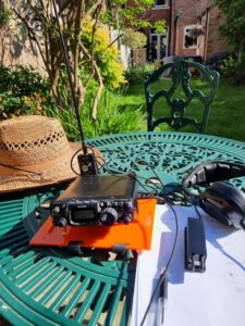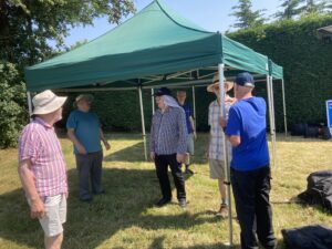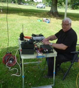 Under the protection of 3 gazebos (assembled the day before in Chris G3YHF logistical masterplan) the Club operated an HF station (the Club’s TS590 on HF- voice and CW- 40/20 and 15 metres on the OFCD) and a K3 providing digital contacts on a 17 metre flat top dipole. Les 2E0LRV provided the VHF coverage from his well-equipped Landrover