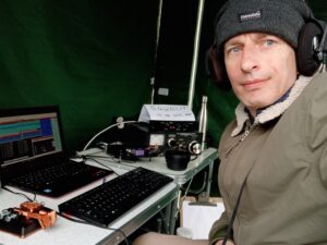 The Assembly and operating team for the event were Chris G3YHF, Ian M0LQY (digital and console operator!), Roger M0GWM (main and invaluable logistic haulier), John M6KET, Phil 2E0WTH, Les 2E0LRV, Lee G0MTN and Dave G3YXM for his invaluable help in getting the antennas hoisted.