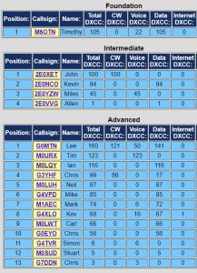 Lee G0MTN had a commanding lead in the Advanced licence group with 160 countries worked. Tim M0URX was in second place at 123 countries, again impressive as these were all worked using SSB.