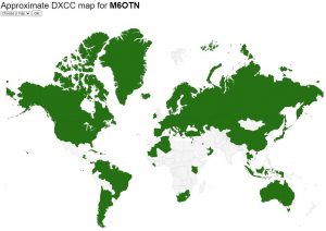 The leading Foundation entrant – in fact, the only one in 2020 – was Tim M6OTN, who contacted radio amateurs in an impressive 106 different countries (see map below – green indicates countries worked).