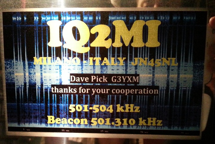 In the post arrived a letter and a rather fine commemorative plaque from Giulio, I2FGT on behalf of the IQ2MI 500 kHz Propagation Beacon Group.
