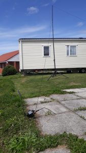 Tim M6OTN, at his caravan in Somerset, made an inverted vee sloper cut for 18MHz with a counterpoise out of spare wire he had to hand (photo left).  He was shocked how well it worked – “it’s the fun of antennas!”  Tim now has 48 countries worked on this band using FT8 – and the challenge is only one-quarter way through!