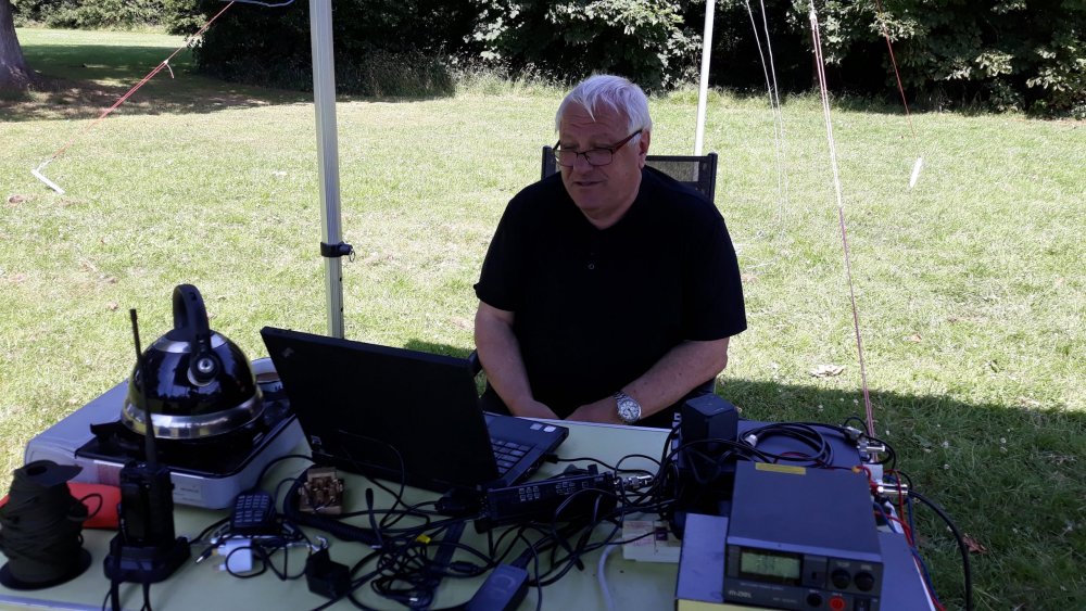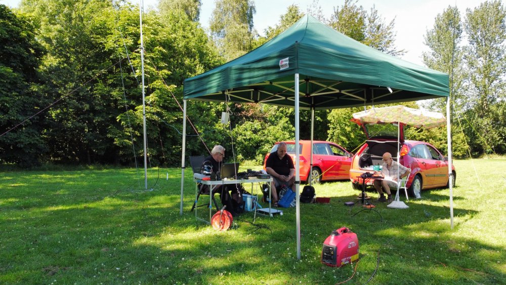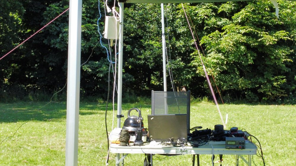 the sun is out .. the sky is blue and is that the sound of young birds twittering in the green foliage?.. no .. it’s members of Wythall Radio Club warming up for the national CW Field day on the Weekend of June 3rd-4th.