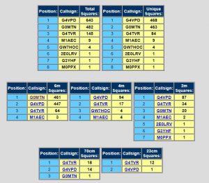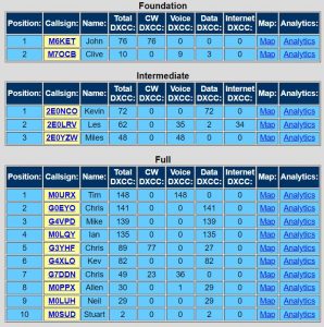 In our ‘Top Scoring Foundation Licencee’ section, Sylwia M3SSP came first in the 2 and 70 category and Clive M7OCB in the ‘all bands and modes’ section.