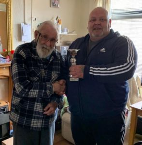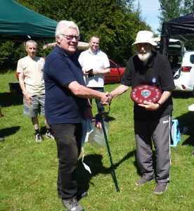 In the all-modes and bands section, Don G0NES retained the Reg Brown G7OBO Trophy helped by picking up all the band, operating and mode bonus points (left, receiving trophy from Mike G4VPD, Club President).