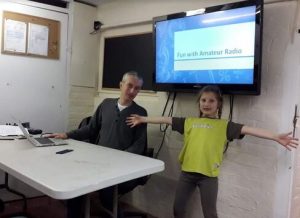 Having gained some knowledge and experience, the evening concluded with the Brownies sending greetings messages by VHF radio to Jan M3YXM, another Club member operating from her home.