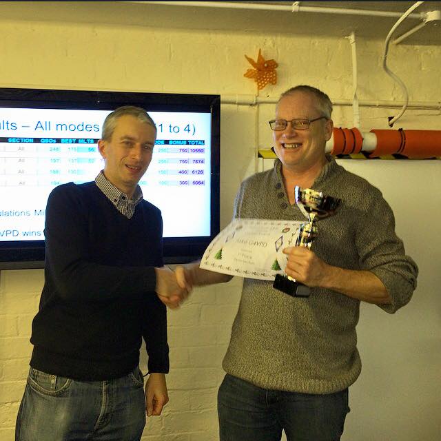 At the presentation evening last night at the Club HQ, Mike fought off tough opposition from David G7IBO to take top spot in the Open Section, while husband and wife team Pete M5DUO and Anita 2E0DUO vied for 3rd place.