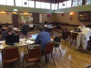 Finally, Ed M6ODQ took his Intermediate level examination on-line and passed with a high score. He took 14 minutes to sit what was an 1hr and 25 min exam! The photo shows the candidates hard at work on their exam!