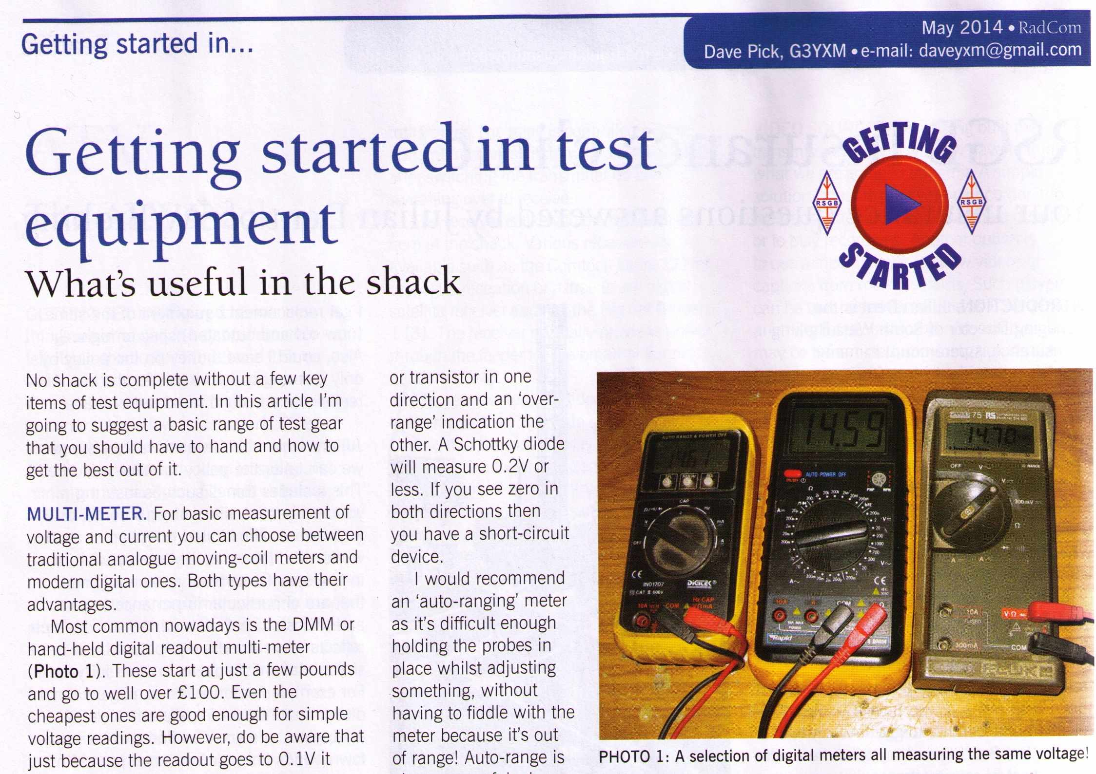Club stalwart Dave G3YXM has written a 4 page article on page 32 entitled “Getting Started in Test Equipment” – and an excellently authored piece it is too!