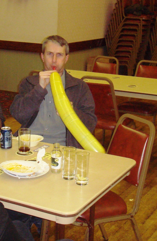 The evening saw a super raffle of prizes generously donated by members as well as the famous stand up bingo, won this time by Walter M0GRO. The skittle winners were Roger and Liz (friends of Colin G6ZDQ and Janett), after a play off between them and Peter G4LWF and Mo. The food was of a very high standard with competing (or is that complementary) curries from Barry M0DGQ and Steve 2E0SDD. One final challenge was sliding a £1 coin towards a 1l bottle of whiskey, the one nearest being the winner, who was Roger.